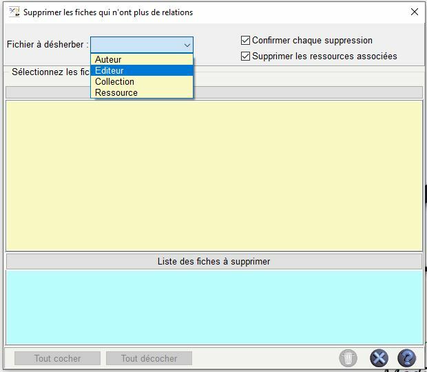 Gestion du fonds > Harmonisation de la base > Supprimer les fiches orphelines